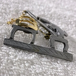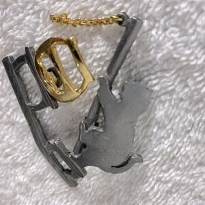 Vintage Grey Metal With Gold Accents Fishing Cat Pin Brooch