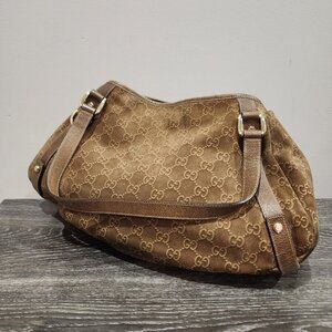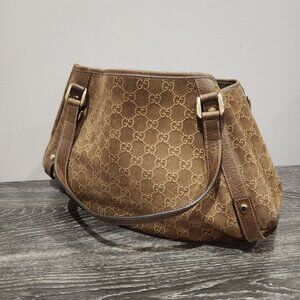 Vintage Gucci Abbey D Ring Suede Shoulder Monogram Tote Bag