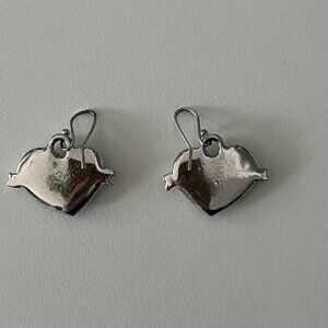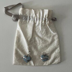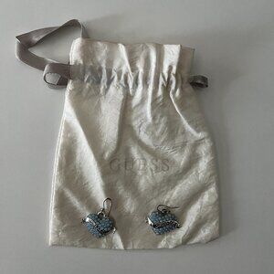 The earrings have been worn and show different signs of wear and tear including scratches, metal discolouration and black signs around the glitters (see pics). They come with the original small bag that has marks of wear and tear as well (see pics).