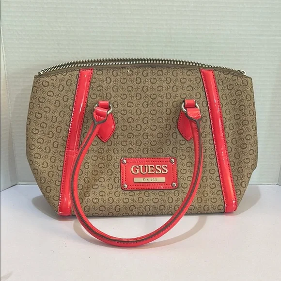 Vintage Guess Brown monogram with Coral accents Tote/Purse