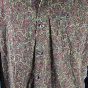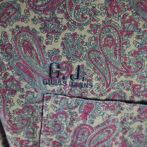 Vintage Guess Button Down Shirt - Green, Brown Purple Paisley Pattern - Mens XL