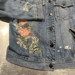 About this Vintage Guess Embroidered Art Denim Jacket (Women’s Size S):