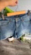 Light blue Guess denim shorts with frayed hem and rose gold logo. Perfect for casual wear. Classic five-pocket style.