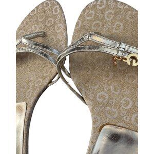 Vintage Guess Mico Kitty Heel, Gold, 8.5W Gems Hot, Sleek, Y2K Sandal, Open Toes