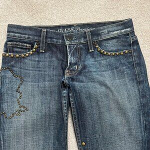 Coolest of the Cool! A rare vintage find — Guess Premium studded flare jeans in a medium wash denim.