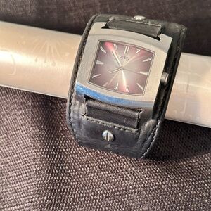 Vintage Guess Watch Y2K Grunge Large Case Black Wide Leather Bund Band Unisex