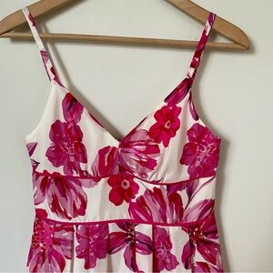 Vintage Guess Y2K Silk Babydoll Sundress Pink Floral Fit and Flare Size Small