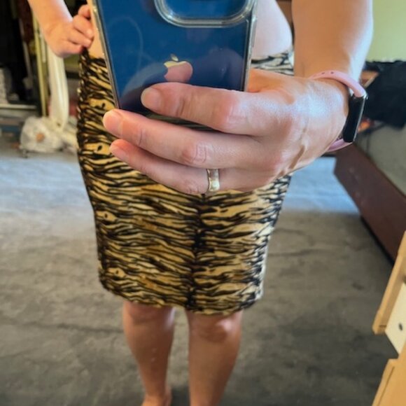 Comfty, lined! vintage animal print skirt from Guess. Lightweight and great for summer and slick with black tights for winter