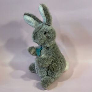 Vintage Gund Light Grey Bunny Rabbit w Green Detail Excellent Condition 11.5”