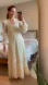 This dress is lined and has lace sleeves, and a very elegant narrow neckline. There’s a cloth bow to cinch the dress at the back. The zipper is fully functioning.