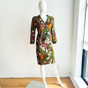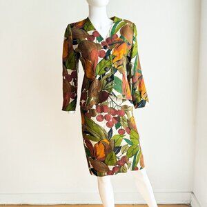 Vintage Guy Laroche Botanical Print Linen Blend Skirt Suit S.