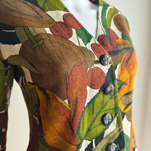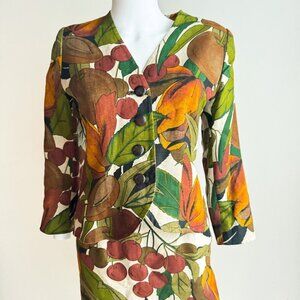 Vintage Guy Laroche Botanical Print Linen Blend Skirt Suit S