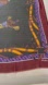 As is common with vintage silk, there are some small snags visible, particularly on the solid-colored border sections, as detailed in the close-up photos. The last picture with the red border best highlights the surface texture where small snags are visible. These blend somewhat with the busy design but are noted for full transparency.