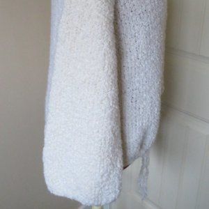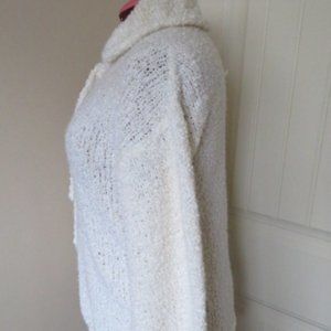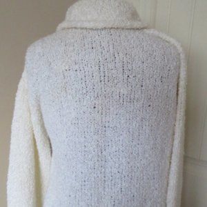 Chunky vintage hand knit creamy white sweater with collar, laced neck and tie at hip.