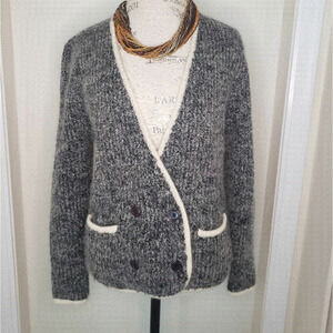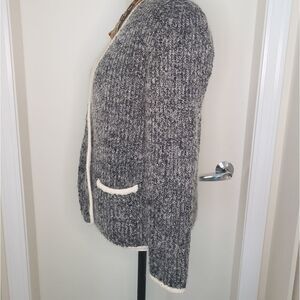 Salt & Pepper Cream & Charcoal Black Ribbed Knit double breasted Buttonup Vneck Cardigan Sweater with Patch Pockets, by The Bay from Hudson Bay Fur Trading Company.