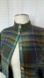 The fabric is an exquisite olive green tartan plaid, woven with shades of turquoise, navy blue, mustard yellow, & lighter sky blue.