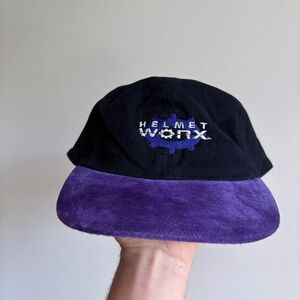 Vintage HELMET WORKX purple black dad hat trucker style hat