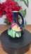 Beautiful vintage H&K Tunstall hand painted art pottery pitcher-style vase featuring vibrant colours, expressive brushwork, and a striking floral motif in raised enamel-style detailing. The sculpted side handle and curved teardrop silhouette make this a standout decorative piece for cottage, eclectic, farmhouse, or traditional décor.