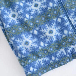 Haband! Fleece Collared Sweater - Blue & Green Snowflake - Vintage