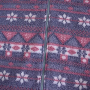 Vintage Haband Grey Pink Snowflake Fleece Festive Holiday Zip Up Sweater LG
