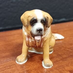 Vintage Hagen Renaker Miniature Saint Bernard Dog with barrel Figurine
