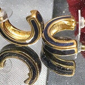 Vintage Half Moon Enamel Gold Tone Stud Hoops