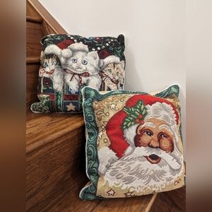 Christmas throw pillows Kittens & Santa zip off shams. Inserts are new. Pillows covers are vintage but in new condition. Not used