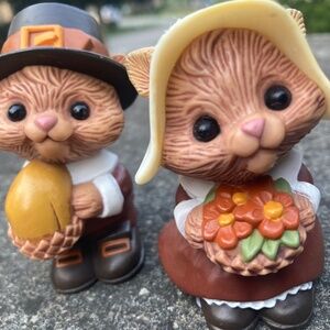 Vintage Hallmark Thanksgiving Salt Pepper Shakers Chipmunks Pilgrims