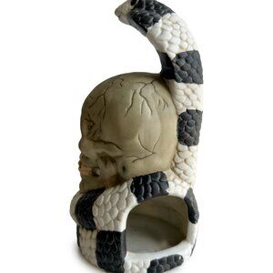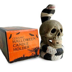 Vintage Halloween Skull and Snake Ceramic Candle Holder