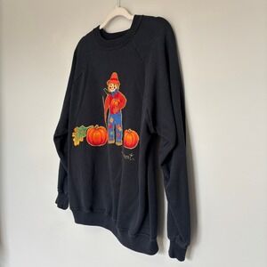 Vintage Halloween Sweatshirt Women's XL Pumpkin Scarecrow Puff Paint Teacher