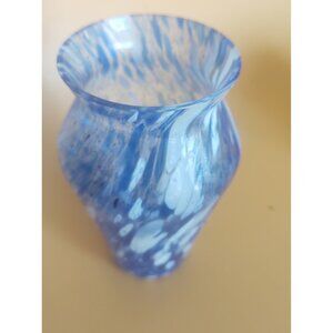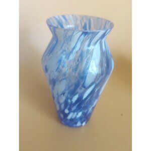 Vintage Hand Blown Blue & White Swirled Glass Vase Isola Bella Italy 5 1/4"