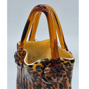 Vintage Hand Blown Glass Purse Vase Leopard, Turtle, Animal Print Glass Handbag