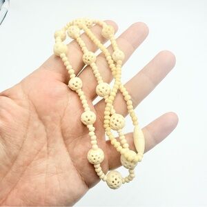 Vintage Hand Carved Bone Bead Necklace Floral Bone Beads