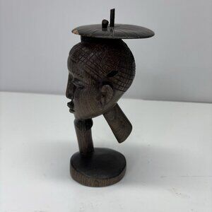 Vintage Hand Carved Ebony Wood African Sculpture Tribal Mens Bust Removable Hat
