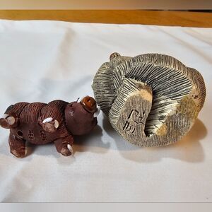 Vintage Hand Carved Koala and Warthog Clay Peruvian Figurines