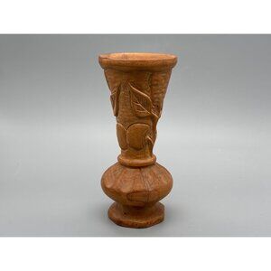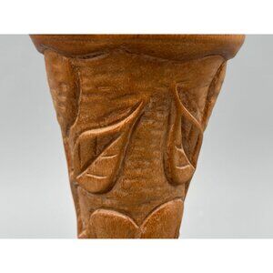 Vintage Hand Carved Wood Vase With Leaf And Floral Motifs | Rustic Decorative