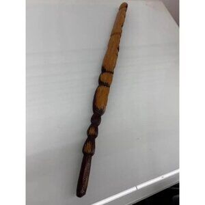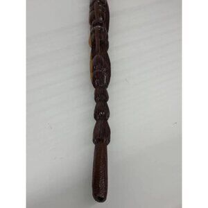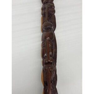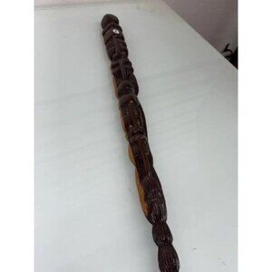 Crafted for both functionality and aesthetic appeal, this vintage wooden walking stick or cane stands out with its intricate hand-carved details. The 39-inch piece showcases a folk art style, making it a unique accessory for any collection.