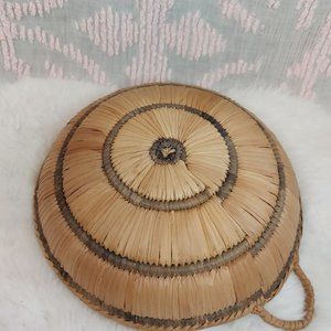 Vintage Hand Crafted African Seagrass Round Tray 11", it is in very great condition no rips or stains on it in sturdy shape.