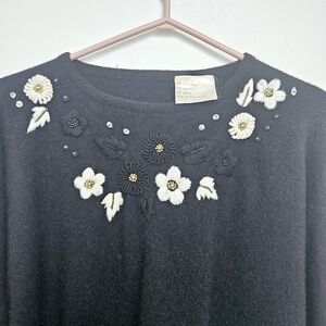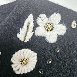 Black on White Jeweled hand Embroidered Floral knit