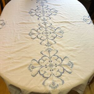 Vintage Hand Embroidered Table Cloth Rectangular