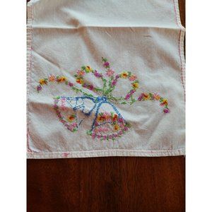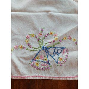 Vintage Hand Embroidered Table Runner Wedding Bells Mr Mrs Floral Bride Groom