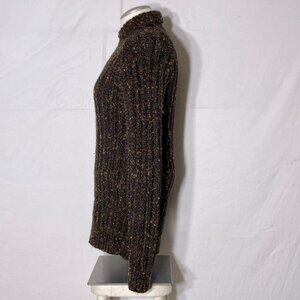 Vintage Hand Knit Brown Autumn Confetti Knit Sweater with Collar XL