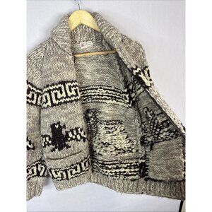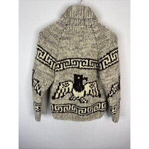 Vintage Hand Knit Cowichan Style Wool Cardigan Women XS/S Thunderbird