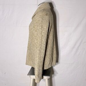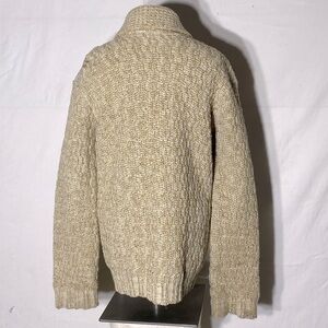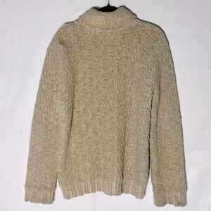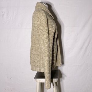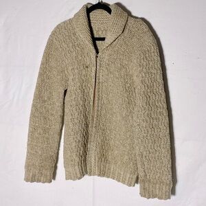 Vintage Hand Knit Ecru Shawl Collar Full Zip Cardigan Sweater L