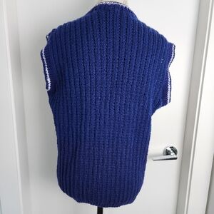 Royal Blue Ribbed Cable Knit Button Front Sleeveless Cardigan Sweater Vest with front Patch Pockets, Handmade by my neighbour.