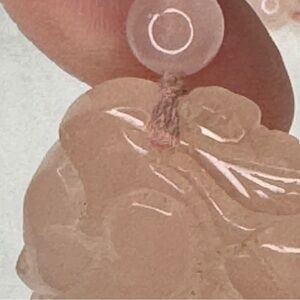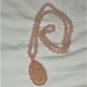 Add a touch of vintage elegance to your jewelry collection with this beautiful hand-knotted rose quartz necklace. The large carved peach pendant adds a unique and artistic touch to the pendant. The necklace is made of high-quality stone material and features a ball/bead chain type. The pendant shape is a knot, and the main stone color is pink.