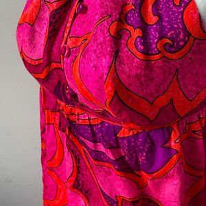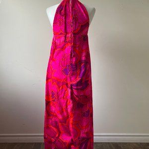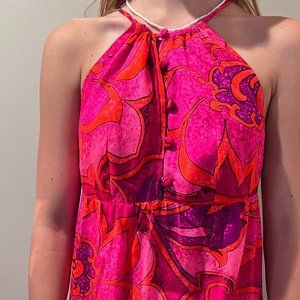 Vintage Hand Made Long Pink and Purple Maxi Tie Up Retro Sun Dress