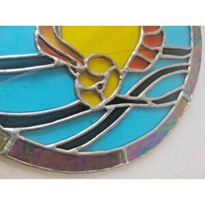 Vintage Hand Made Stained Glass Window round Hanging 10" Diameter
