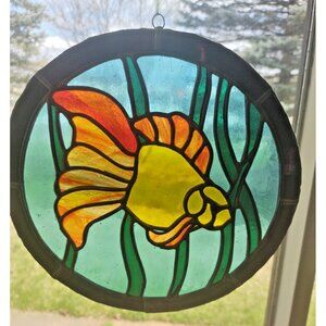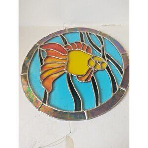 Vintage Hand Made Stained Glass Window Hanging 10" Diameter Angelfish