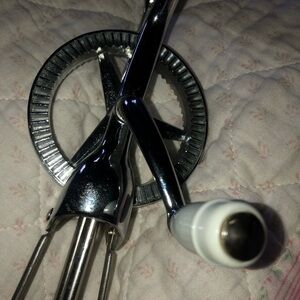Classic hand mixer with sleek white handles. Perfect for baking enthusiasts, easier to pull this egg beater out than your mixmaster. This is definitely a heavy duty egg beater, used rarely by the look of it and nice looking. Perfect for off the grid, camping and for those getting away from electrical kitchen utensils. Please check pics out